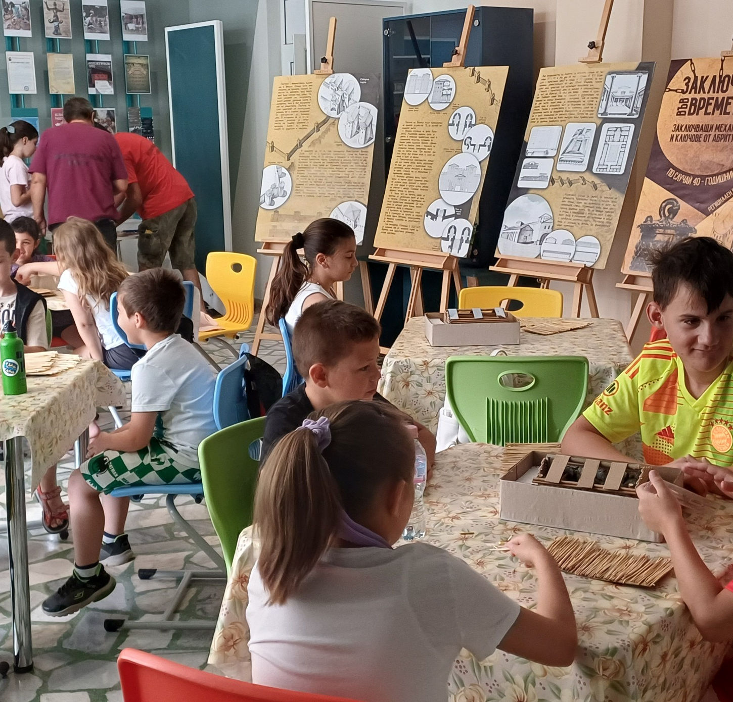 Кулминацията на заниманието беше творческа работилница, в която участниците сами започнаха „строежа“ на свои къщи – от глина, дървени клечки, слама и хартия. Всяко дете вложи въображение, сръчност и наученото по време на урока, за да изгради своя миниатюрен дом. Така знанието се превърна в практика, а историята оживя чрез игра и творчество.